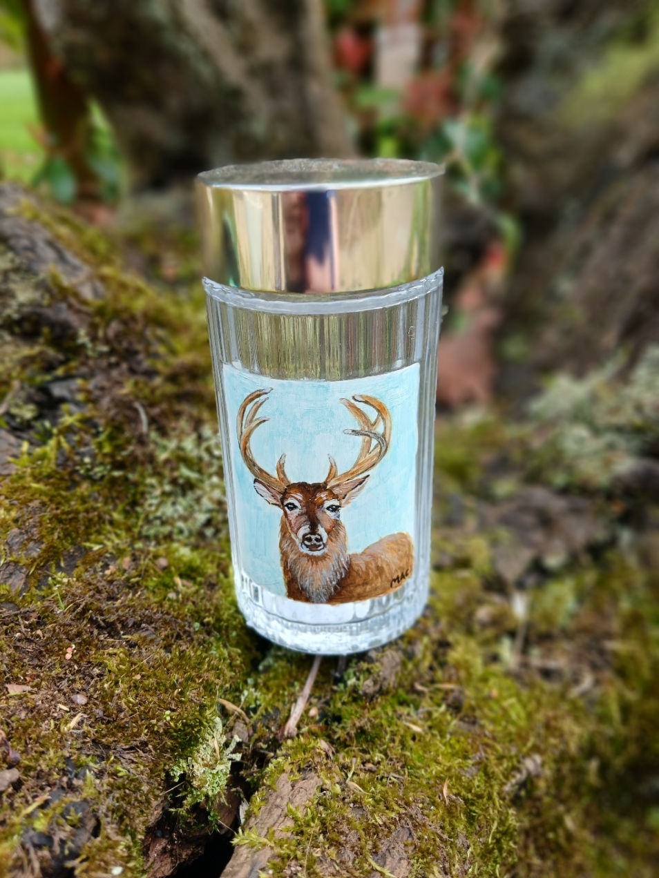 Mushroom lamp, rechargeable. Hand painted with a fox.